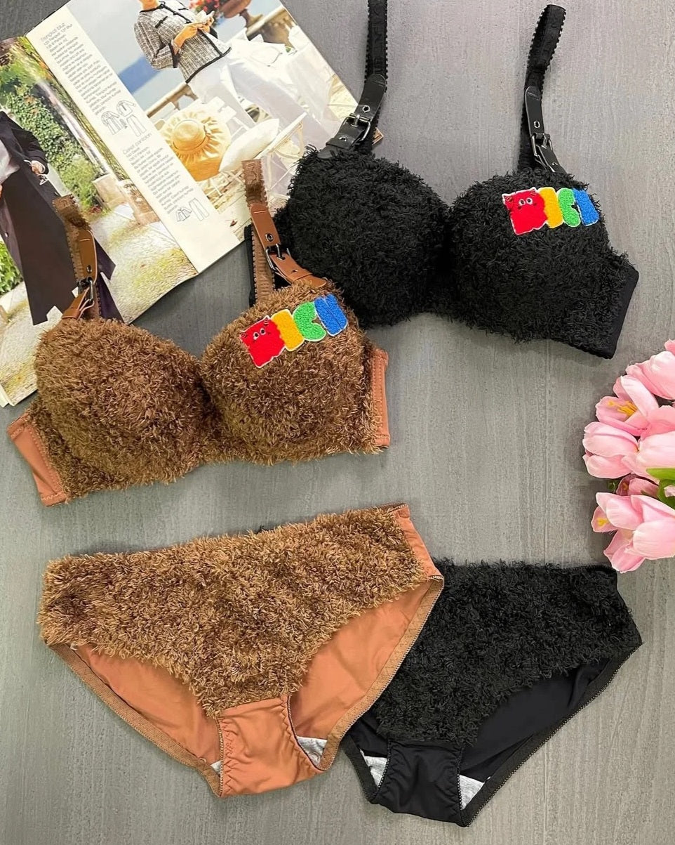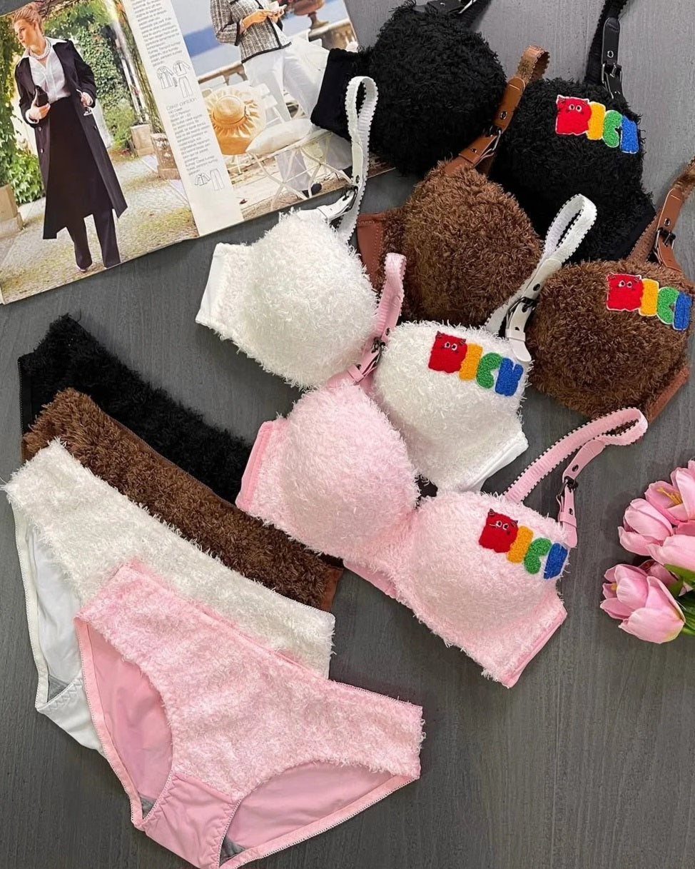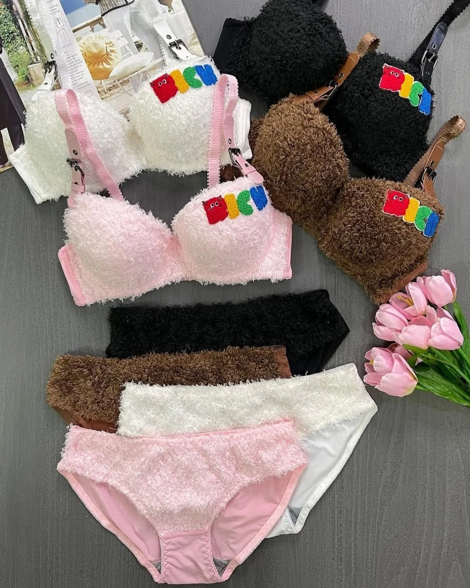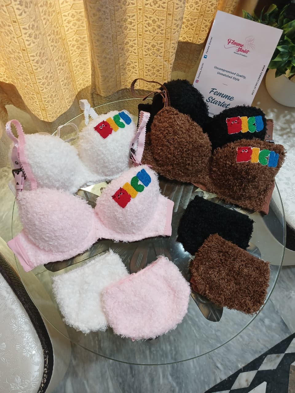 Fluffy Soft Bra & Panty Set – Cute Bear, Flurr Love, & Teddy Touch Feel