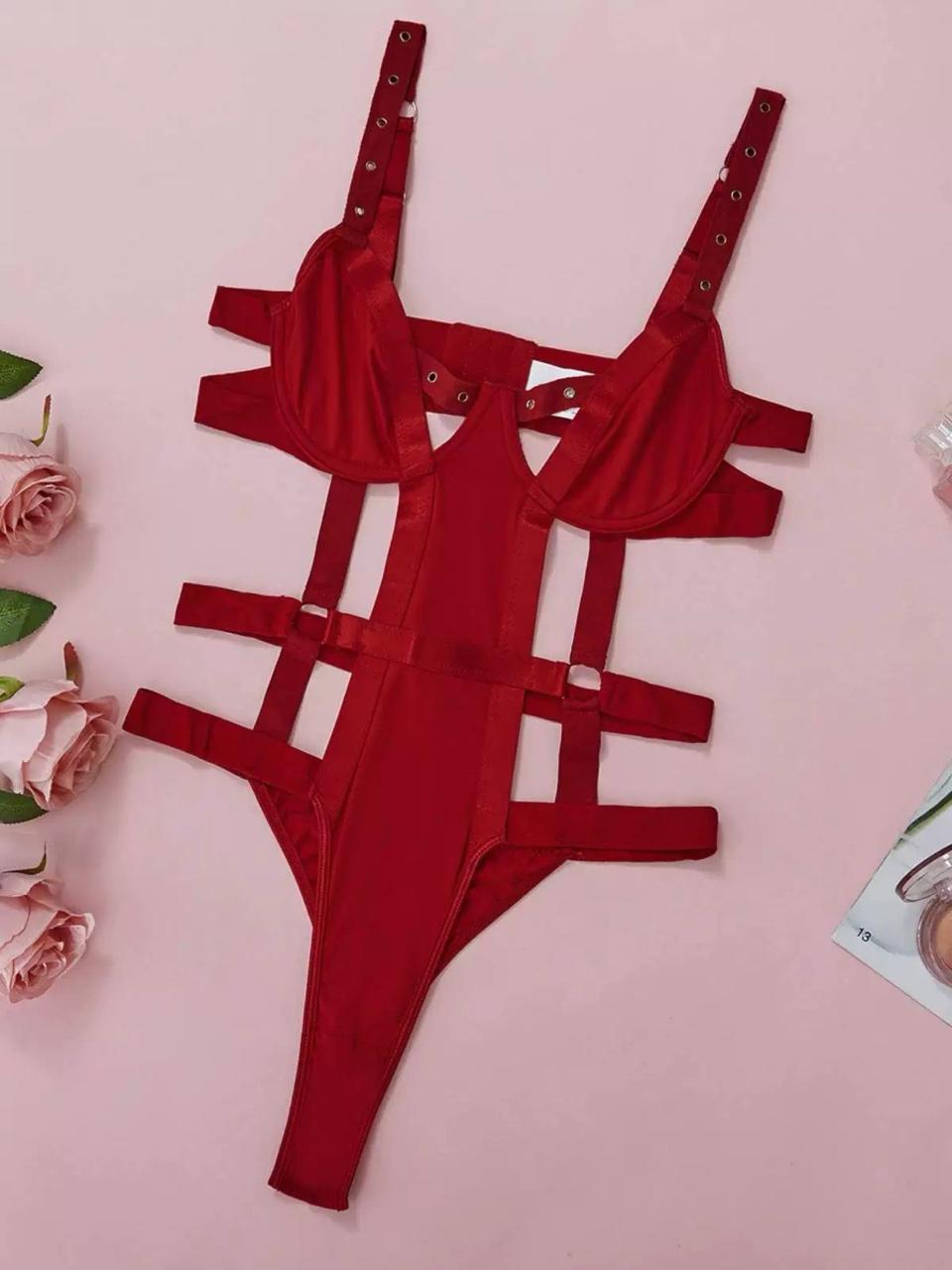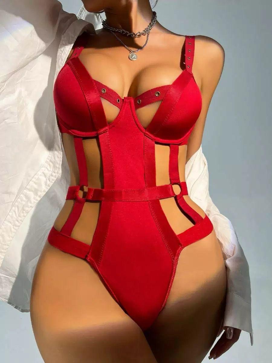 Strappy Cage Bodysuit – Cutout Design & Thong Bottom